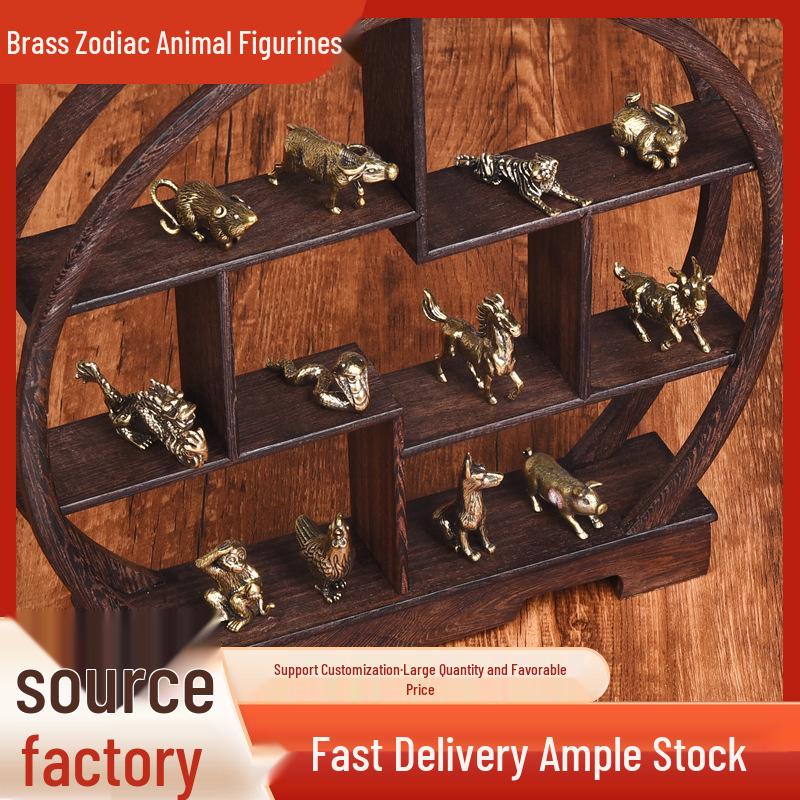 Komplettes Set Messing Chinesische Tierkreisfiguren: Ratte, Ochse, Tiger, Hase, Drache, Schlange, Pferd, Schaf, Affe, Hahn, Hund, Schwein.