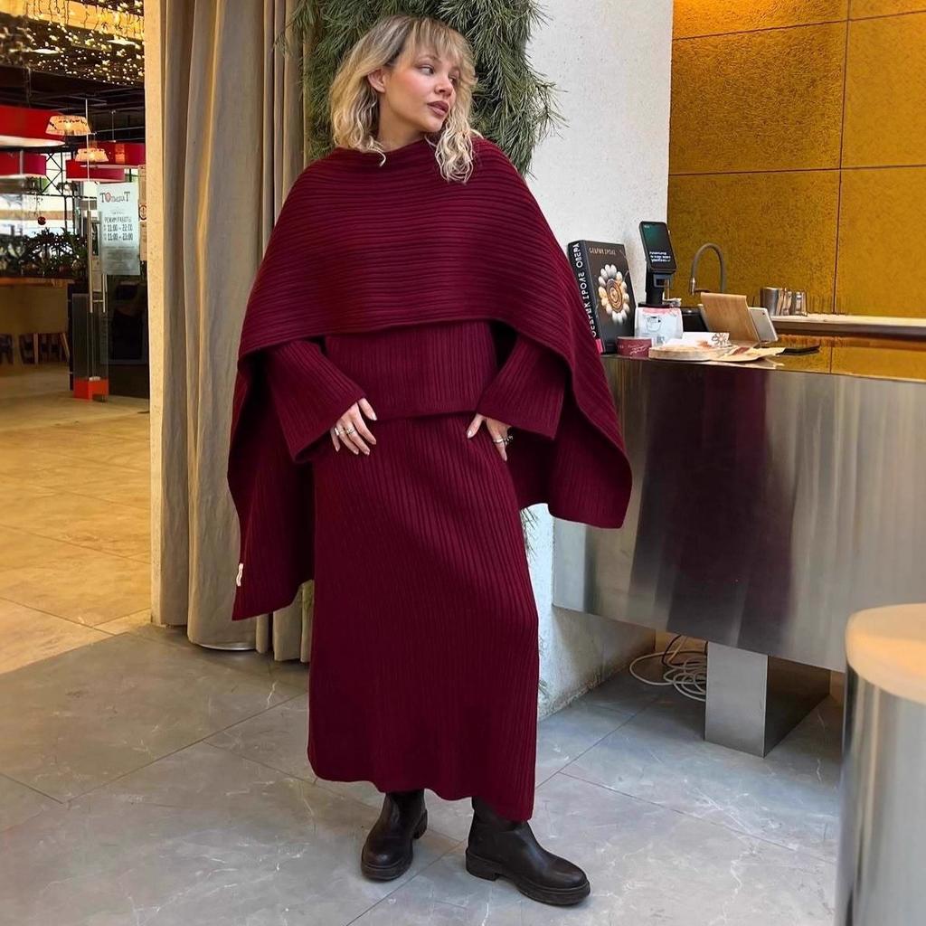 Match - Pair with white sneakers or ankle boots for a casual, trendy look; add a crossbody bag for daily errands.Style the sweater with jeans or leggings for a cozy, laid-back outfit.Pair the straight skirt with a tucked-in blouse or a cropped sweater for a more polished look.In cooler weather, add a long cardigan or a trench coat over the set for extra warmth and style