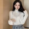 Simple semi-turtleneck pullover, long-sleeved autumn and winter warm knitted sweater, bottom elastic top, slim women's outer sweater