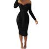 Wenn Sie dieses Kleid tragen, werden Sie so sexy und verlockend aussehen, weil es Merkmale wie Off-Shoulder-, Plissen-, V-Ausschnitt-, Schnür- und enge Taillendesigns aufweist.