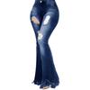Diese bequemen, ausgestellten Jeans bestehen aus hautnahem Denim und haben eine hohe Elastizität, einen Reißverschluss, ein zerrissenes Design und zwei Seitentaschen.