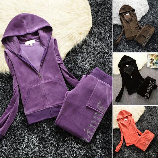 Anzug Inhalt: Dieser Damen-Trainingsanzug besteht aus einer langärmeligen Kapuzenjacke und einer Hose mit weitem Bein und Kordelzug in der Taille, verziert mit einem modischen Buchstaben und einer Krone aus Strasssteinen.
