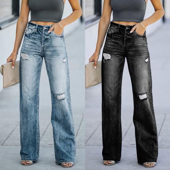 Stilvolles Design mit hoher Taille: Werten Sie Ihren Look auf mit dieser Damenjeans mit weitem Bein und schmeichelhafter hoher Taille, die Ihre Silhouette mühelos betont.