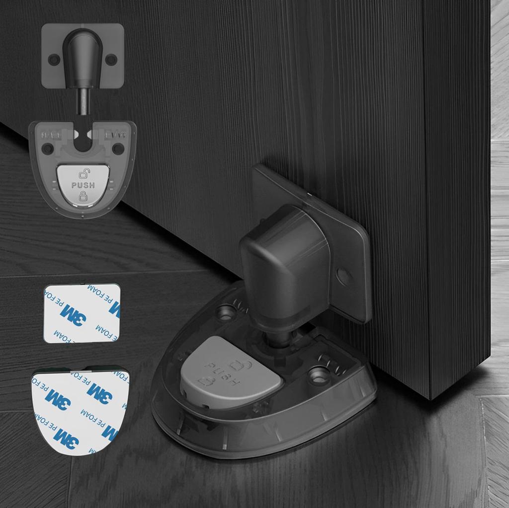fogman Door Stopper, Indoor/Entrance Door Stop, Strong, Aftermarket Locking Function, Stick-On, Safety (Black)