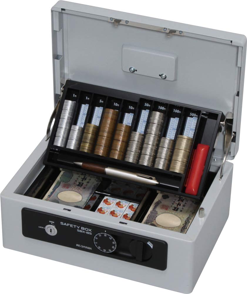 Iris Ohyama SBX-B5 Portable Safe, Dial Type, Double Lock, B5 Size, Double Tray, Gray