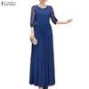 ZANZEA Women Casual Round Neck Short Sleeve Lace Crochet Patchwork Dress