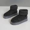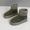 Neue Herbst- und Winter-Schneestiefel Damen Samt einfarbig mittelhoch höhenvergrößernd lässig warm Baumwollschuhe