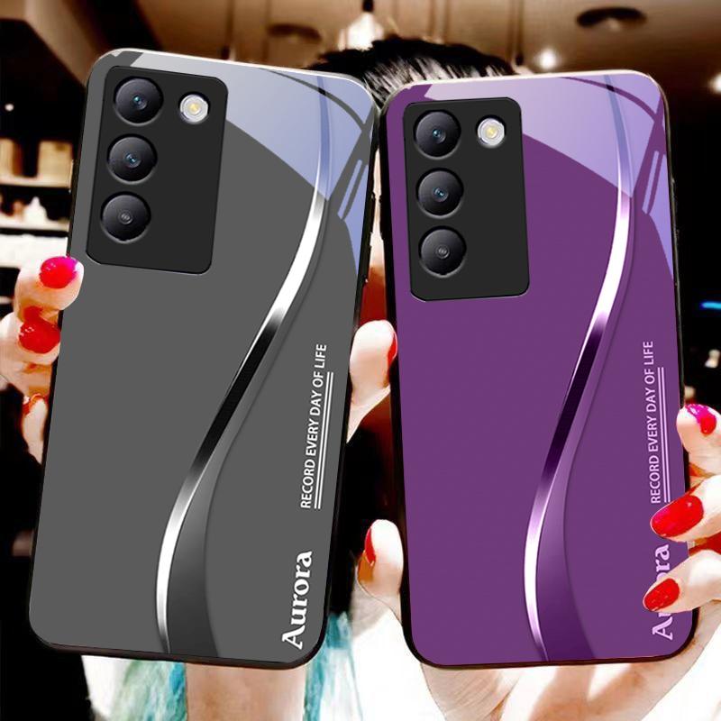 Zweifarbige Streifen für Y72 33S 11 03 36 96 Lite 35 16 Iqoo 12 V40 SE 5G 29 40 21 30 X80 Pro Vivo Handyhülle aus gehärtetem Glas Schwarz