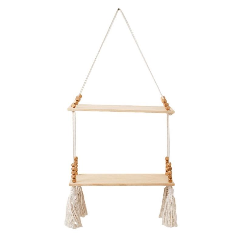 Unique Decorative Floating Tassels Shelf Wood Wall Mounted Storage Rack for Living Room Stylish Bedroom Organizer