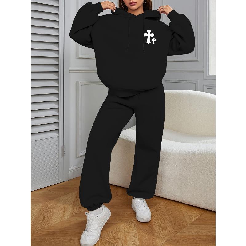Women's 2 Piece Polyester Athletic Tracksuit Sweatshirt and Relaxed Knit Pants for Gym Lounge