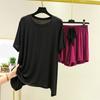 Women's Loose Casual Round Neck Short Sleeved T-shirt Shorts Set Solid Color Pajamas
