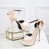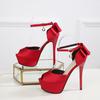 Modische Peep-Toe-Plateau-Pumps für Damen, Brautschuhe, Stiletto-Absätze mit Schleife hinten, elegante Damenschuhe mit dünnem Absatz