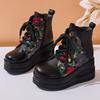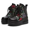 Fashion GKTINOO Handgefertigte Damenstiefel aus echtem Leder Runde Zehenpartie Retro Keilabsatz Stiefeletten Print Plateau High-Heel-Stiefel