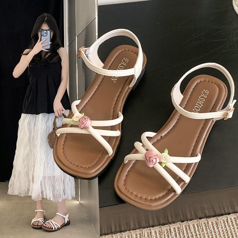 Mode Flacher Boden Mode Trendige Damen Strandsandalen Outdoor-Bekleidung Rutschfest Outdoor Vielseitig Mit Blumen Verziert Damen Sandale