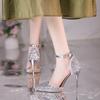 Mode Hohl Pailletten Sandalen für Damen Frühling und Sommer neuer Stil spitze Zehe Schnalle Stiletto hoher Absatz Mode Sandalen