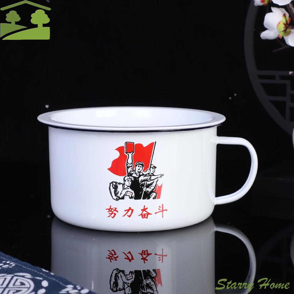 Household 1300ml Enamel Instant Noodle Bowl with Lid Large Size Ramen Bowl Thickened Handle Lunch Box Soup