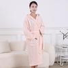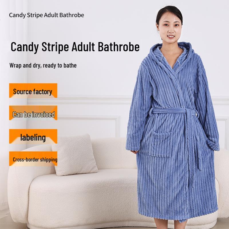 Dicker Kapuzen-Bademantel für Damen in Candy-Streifen, Übergröße, Korallenfleece