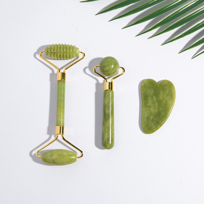 Grüner Xiu Jade Roller & Gua Sha Set - Laser graviert, Universeller Meridian-Massager für den Gebrauch im Schönheitssalon