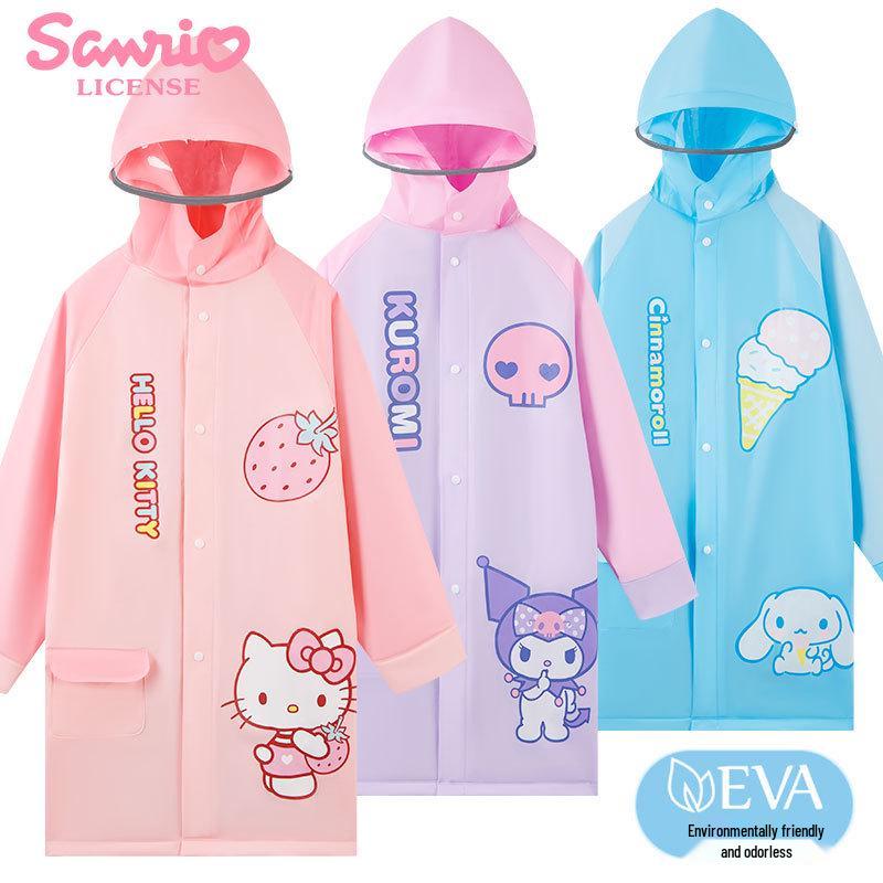Sanrio Super Süßer Kuromi Regenmantel für Kinder mit Rucksackfach, Großer Schirm, Perfekt für Grundschul- und Kindergartenkinder.