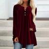 Damen V-Ausschnitt Knöpfe Brustrüschen Asymmetrischer Saum Samt Langarmhemd