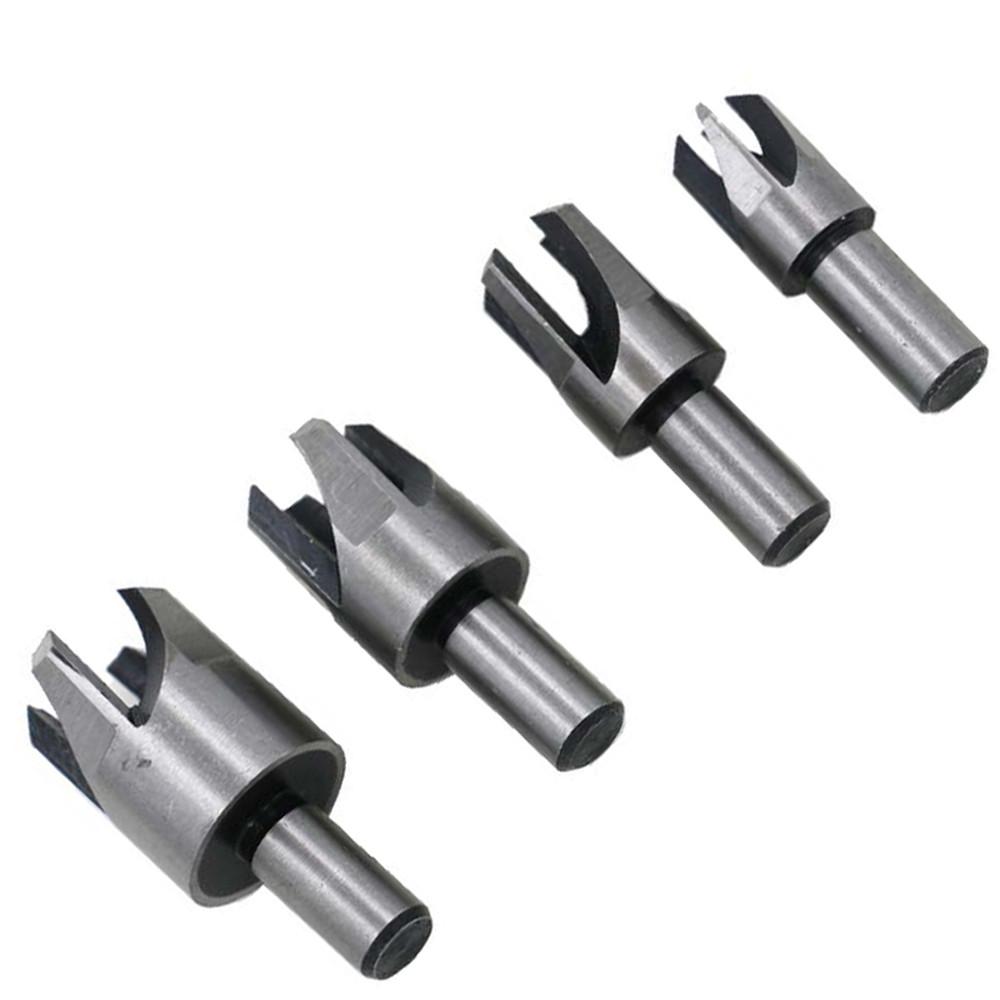 4 Pcs Carpentry Wood Plug Cutter Straight & Tapered Type Drill Bit Sets