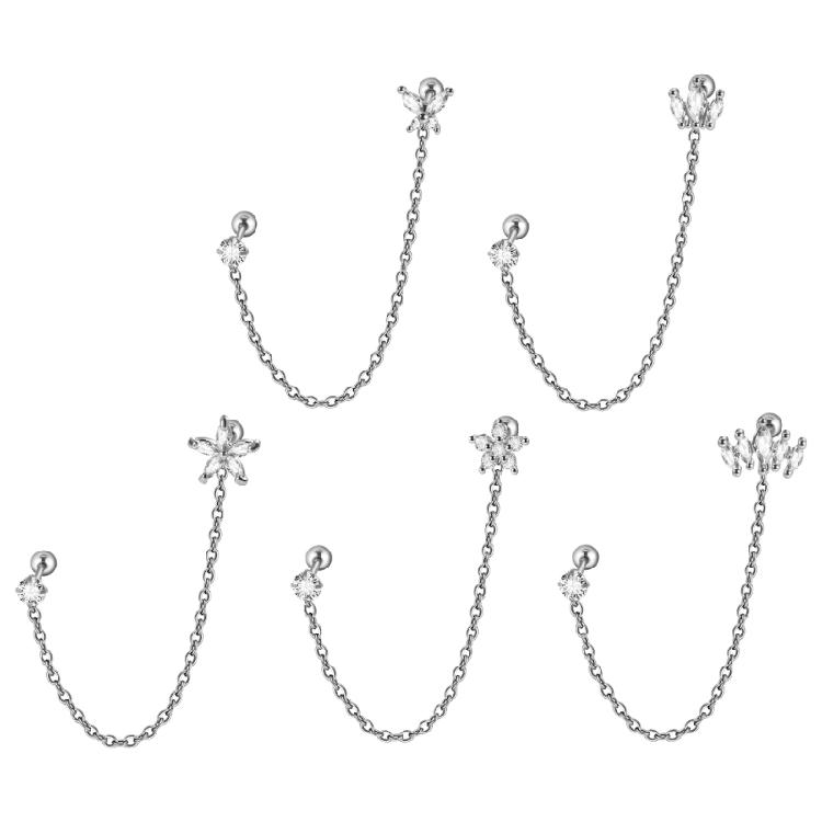 Zircon Crowns Chain Ear Tragus Cartilage Flower Piercing Earring Conch Ear Helix