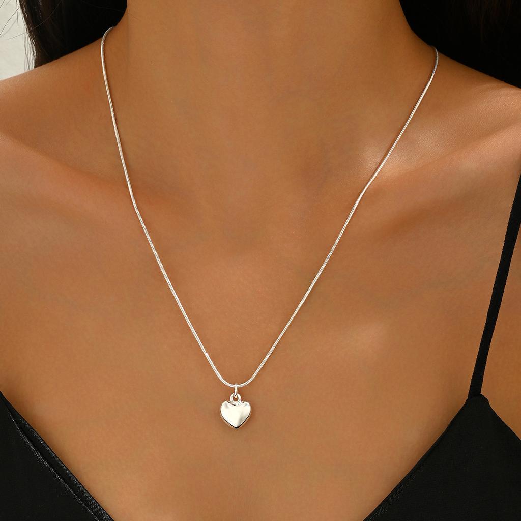 Copper Color Solid Small Heart Pendant Necklace Snake Chain For Women Wedding Charm Fashion Jewelry
