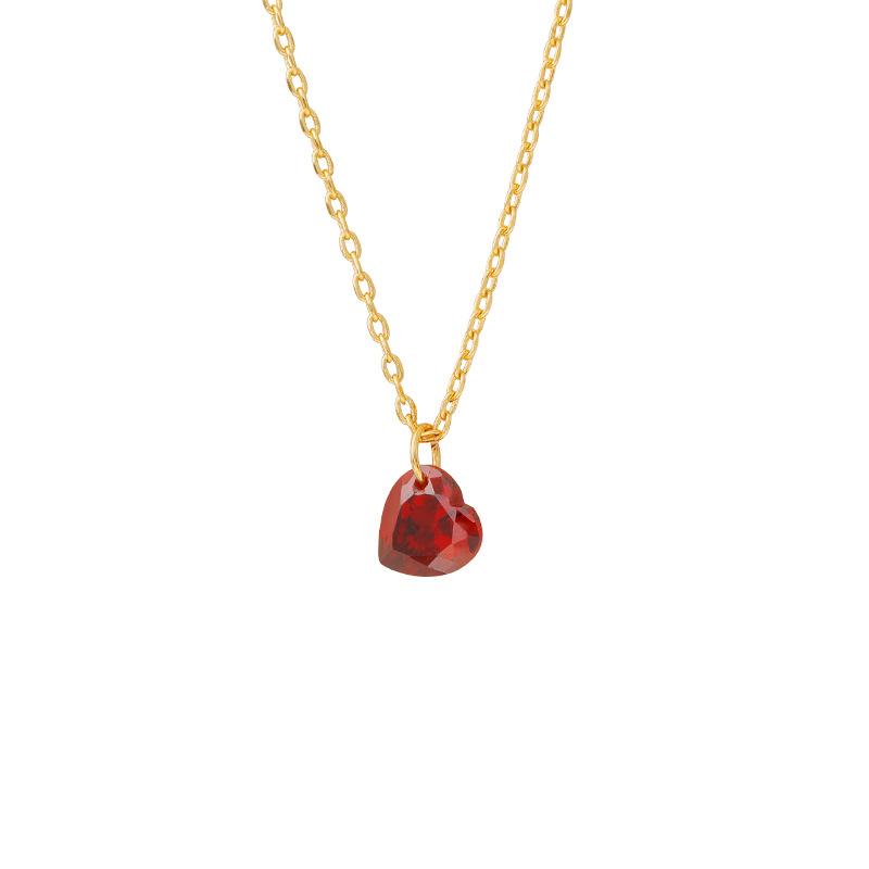 Copper gemstone necklace, women's pomegranate red single diamond collarbone chain, simple temperament, light luxury necklace
