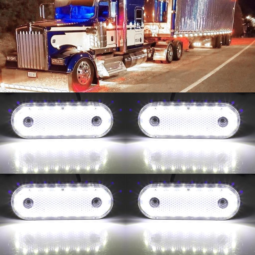 [Produktdetails] Größe: Schraubeninnendurchmesser 0,3 Zoll (7mm), Gehäuse 4,6 x 1,7 x 0,4 Zoll (11,7 x 4,3 x 1 cm), Linsenfarbe: Blauer Stromverbrauch: 24 V; Material: PC + LED; Kompatible Modelle: LKW, Industriefahrzeuge, Lolis, Anhänger, Busse, Wohnmobile, Dekorateure usw.. Menge: 4 Stück