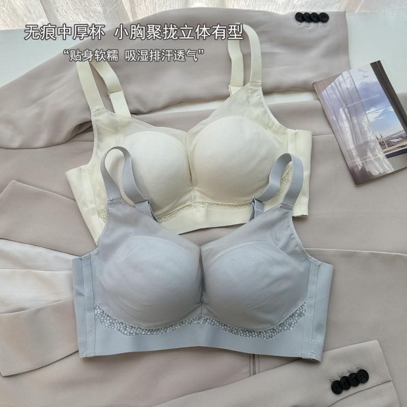 New seamless comfortable underwear women's big breasts show small sexy collection breasts anti-sagging lace adjustment bra cover