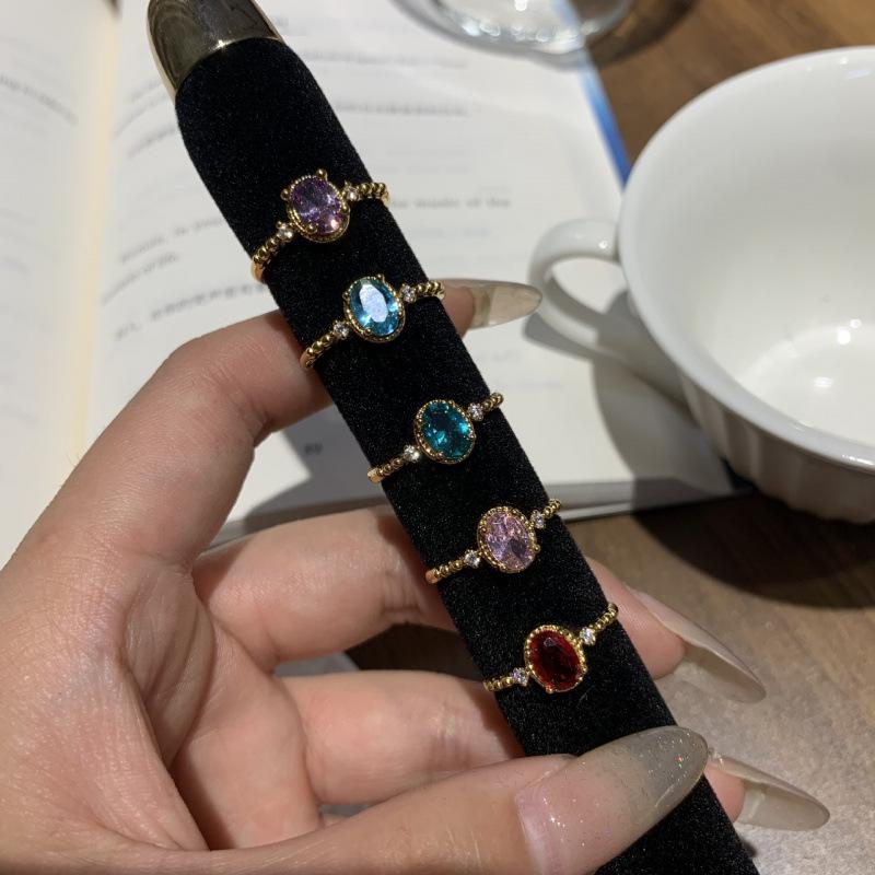 Vintage Hofstil Blauer Ring Damen Aquamarin Eingelegt Nische Französisches Design Offener Zeigefingerring