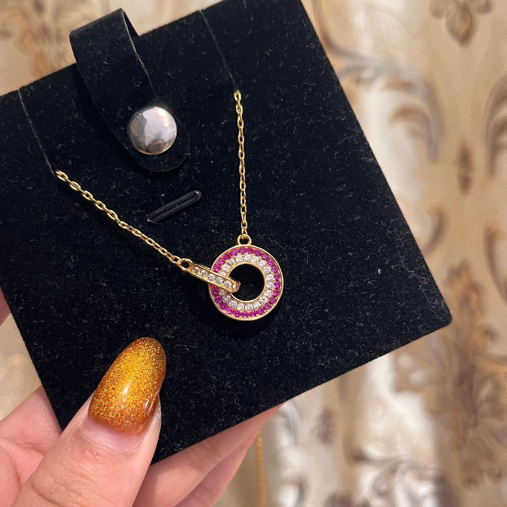 Roter Korund Runder Kuchen Halskette Design Sinn Farbiger Diamantring Pulloverkette Schiebbar Verstellbar Live-Übertragung Zubehör