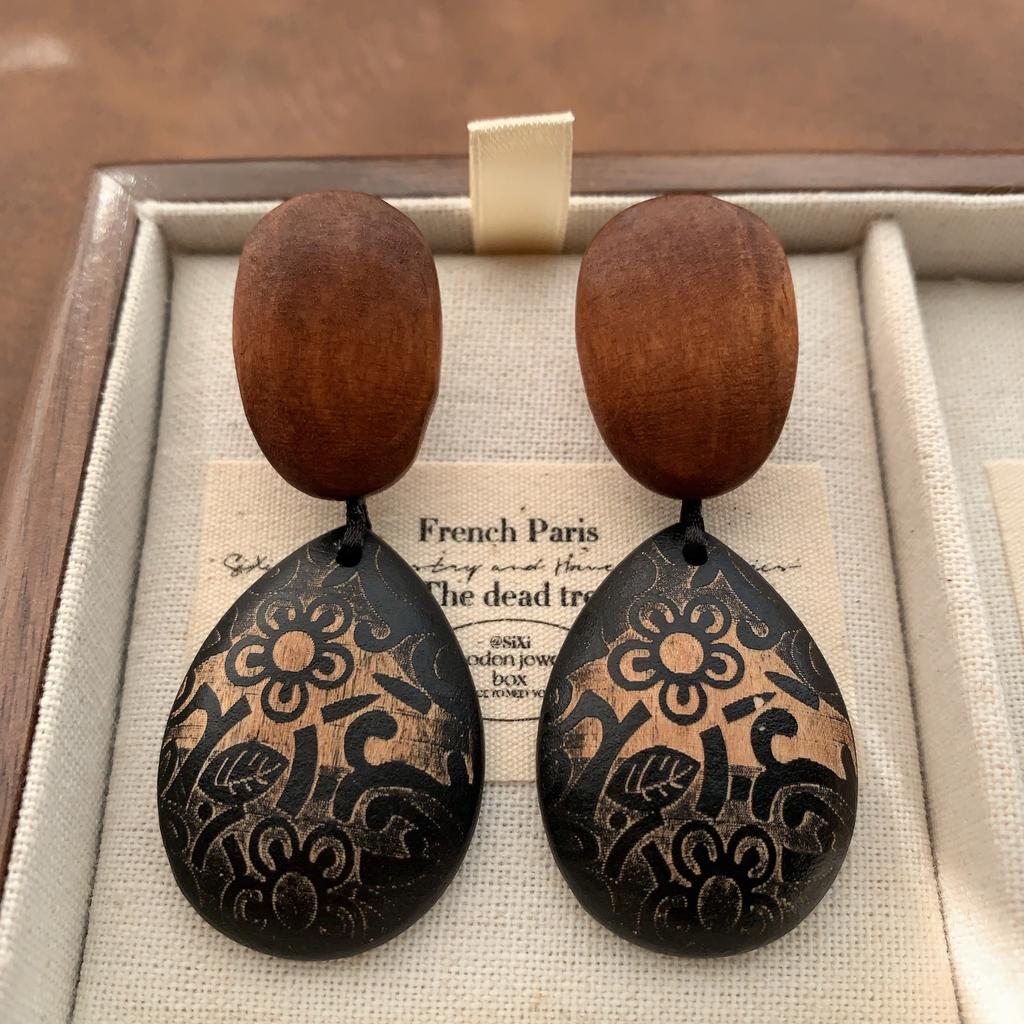 Ohrringe mit ethnischer Atmosphäre, Ohrringe, Schwarze Glasur, Retro-Holzmuster, Täglicher Low-Luxury-Modetrend, Hochwertige, exquisite Ohrringe