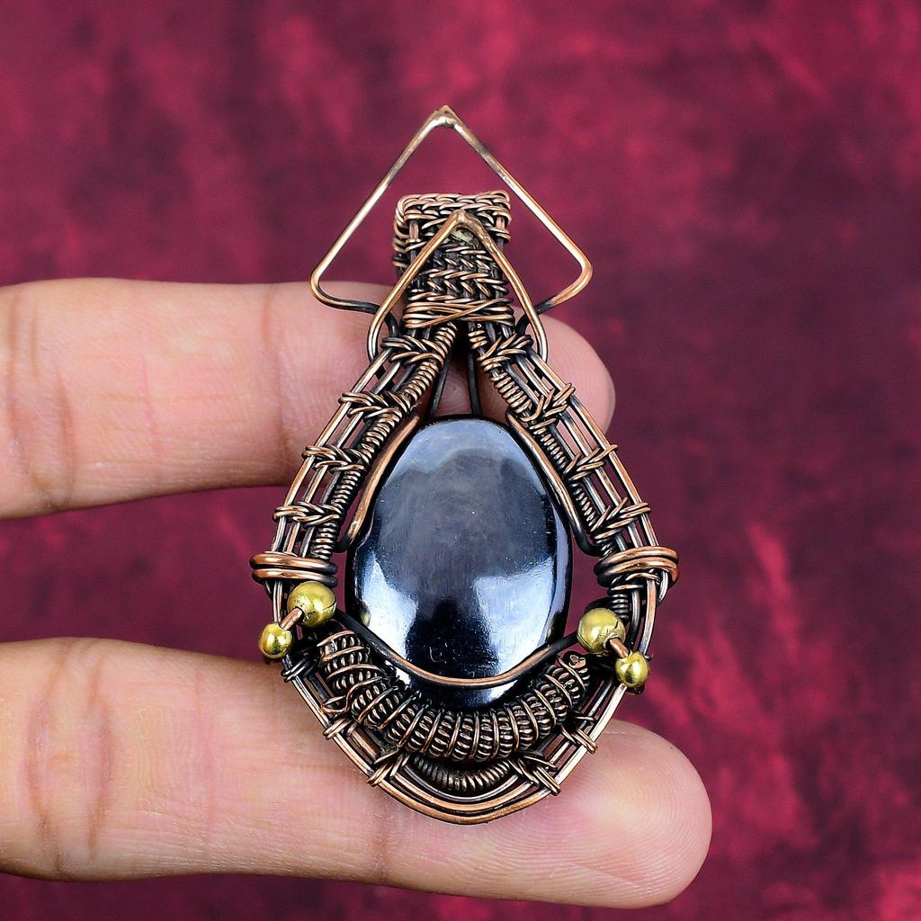 Schungit Edelstein Anhänger Handgefertigter Designer Anhänger Kupferdraht Gewickelter Schmuck