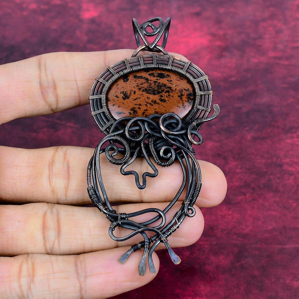 Mahogany Obsidian Pendant Handmade Gemstone Pendant Copper Wire Wrapped Jewelry