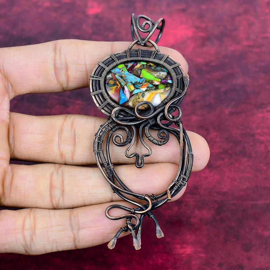 Fiesta Kingman Turquoise Pendant Handmade Copper Wire Wrapped Gemstone Pendant