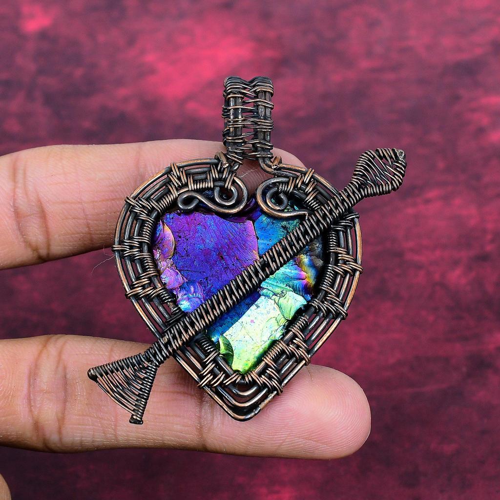 Titanium Druzy Pendant Copper Wire Wrapped Gemstone Jewelry Handmade Pendant