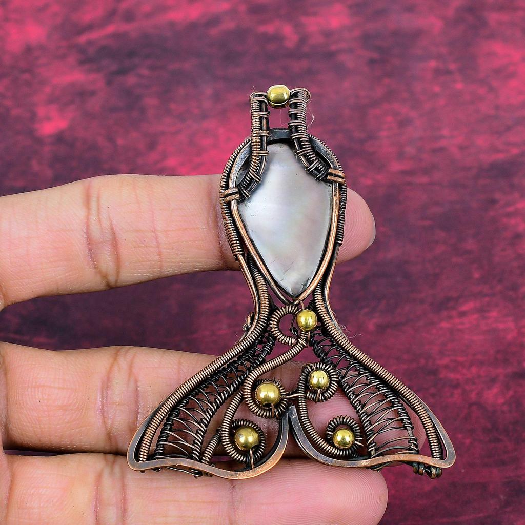 Black Mother Of Pearl Pendant Copper Wire Wrapped Fish Pendant Gemstone Jewelry