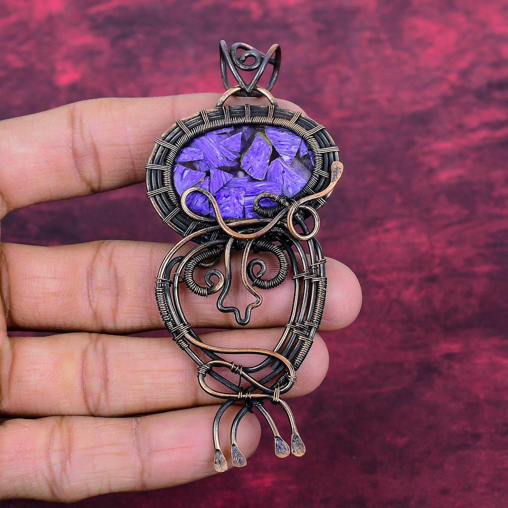 Kupfer Charoit Echter Edelstein Anhänger Handgefertigter Kupferdraht Gewickelter Schmuck