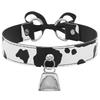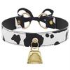 Sexy Leder-Choker-Halskette mit Kuhmuster, verstellbarer Schleifenanhänger und Glöckchen-Halskette