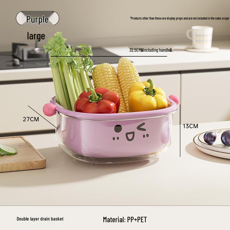 Wutuo Double-Layer Kitchen Draining Basket with Lid