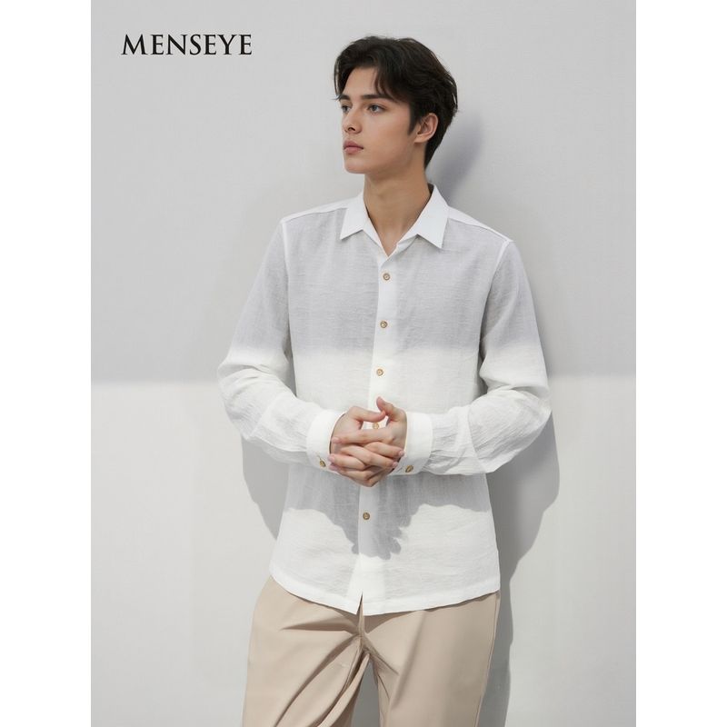 Menseye Men's Long-Sleeved Shirt, White Suit Collar, Light Business Style, Original Versatile Texture, Casual