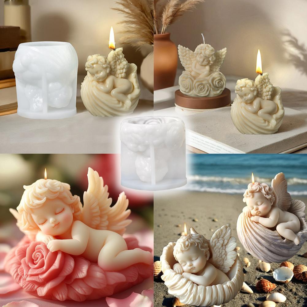 3D DIY Blume Engel Kerze Silikonform Flügel Junge Engel Kerzenform Rosenblume Engel Beton Zement Gipsformen