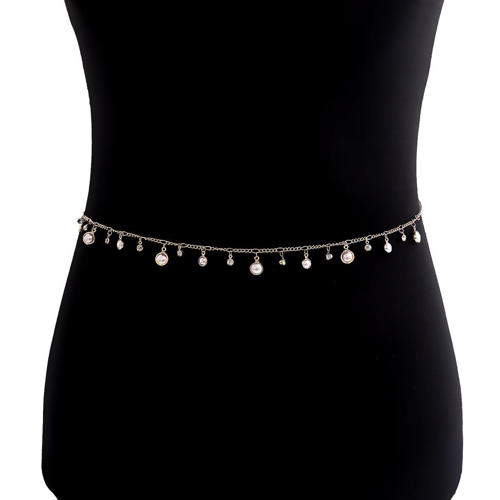 Europe, America, Spice Girl, fringed imitation pearl zircon pendant, waist chain, belt, small fragrant style metal waist chain for women