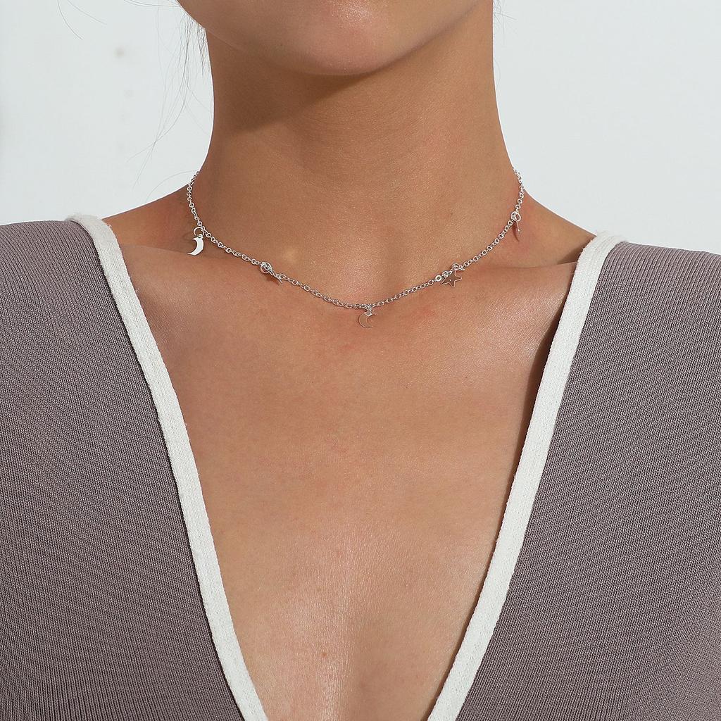 Europa, Amerika, Trend Halbmond fünfzackiger Stern Anhänger Halskette Damen, heiß verkaufte Persönlichkeit Temperament Artikel
