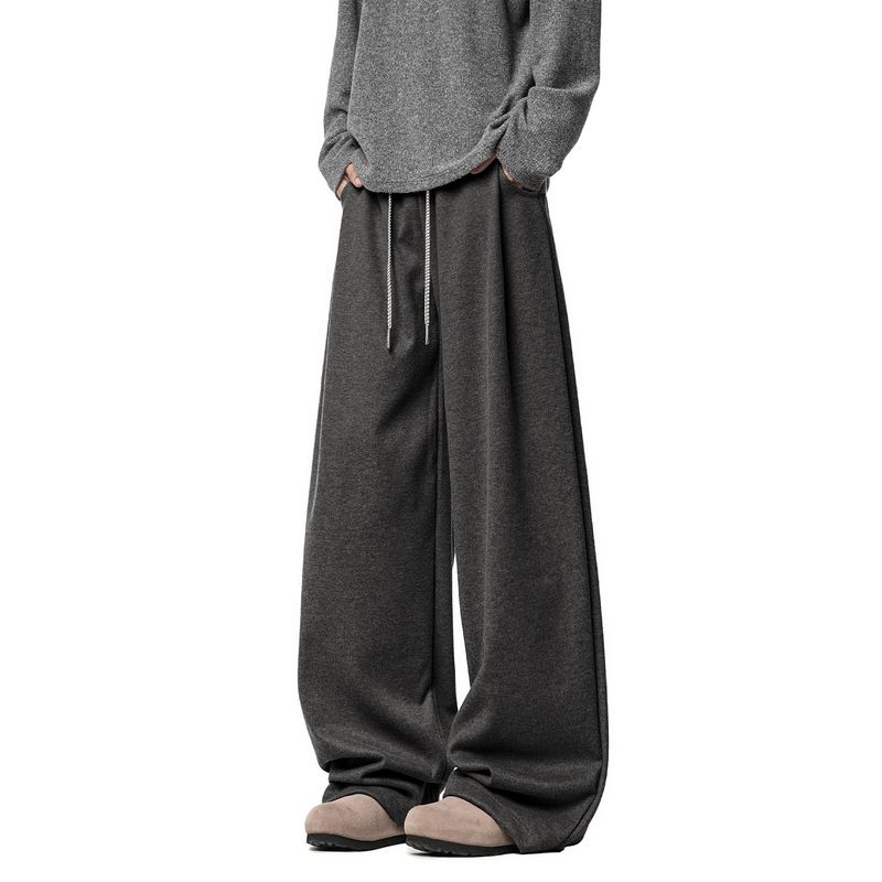 51 Hip-Hop Trendy Brand Thick Fleece Pants for Men, Vibe Winter American Style Casual Solid Color Straight-Leg Sports Trousers