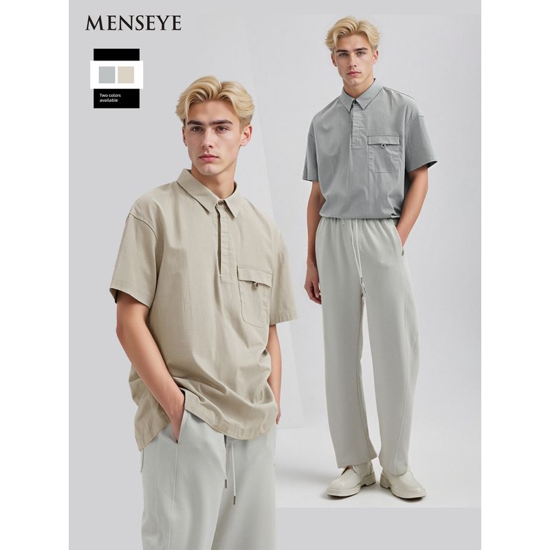 Menseye Men's T-Shirt Jacket Men's Turn-Down Collar Half-Sleeve Shirt Fabric Hem Shrinkage Functional Jacket
