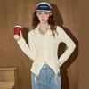 Coolhut American-Style Niche Drawstring Slit Waist-Cinching Lapel Pleated Long-Sleeve Top 25 Autumn Women's Base Shirt
