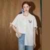 Coolhut Japanese Style Doll Collar Loose Puff Sleeve Embroidered Cuff Shirt Women's 2025 Summer Short-Sleeved Shirt
