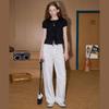 Coolhut Flower Bud Sleeves with Ruffled Edges and Bow Tie Collar 2025 Summer Women's Shirt Short-Sleeved Cardigan Top Cotton